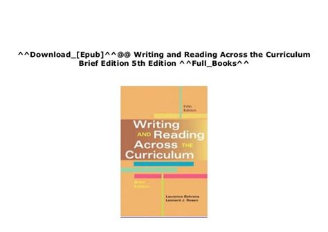 Read Writing and Reading Across the Curriculum Brief Edition Epub online is a convenient and frugal way to read Writing and Reading Across the Curriculum Brief Edition you love right from the comfort of your own home. Yes, there sites where you can get Epub "for free" but the ones listed below are clean from viruses and completely legal to use.